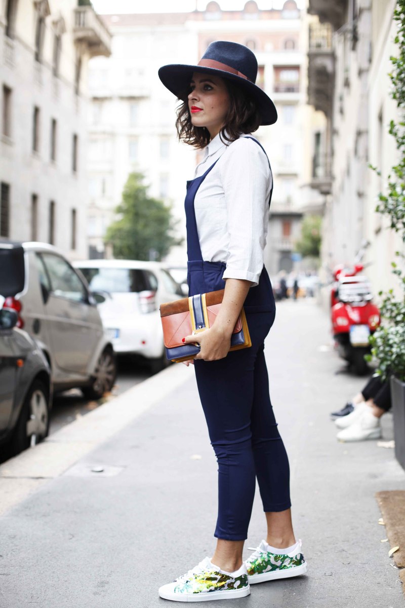 Per questa Fashion Week mi ero preparata 4 look e un rigido calendario di appuntamenti fra sfilate, presentazioni e cocktail party. Ovviamente non sono riuscita a fare tutto, ma sono molto soddisfatta di quello che sono riuscita a fare. Come primo look ho deciso di indossare una salopette blu navy abbinata ad alcuni accessori che penso abbiano arricchito l'outfit.
