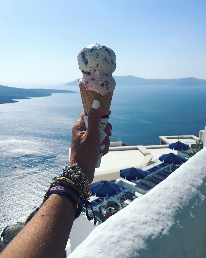 Prima di proseguire vi do un consiglio preziosissimo in vacanza, sceglietevi l'amica più pazza che possiate avere e convincetela a partire con voi. Sarà la cosa migliore che farete insieme e la mia amica Catharina è stata proprio così per me. Il pranzo di solito lo saltavamo e preferivamo farci un bel gelatone a metà pomeriggio con vista sulla caldera oppure goderci un po' di frutta in spiaggia con un Frozen Margarita o un Mojito fresco. Ebbene sì, siamo delle ubriacone!! ;P
